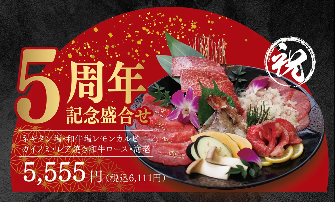 5周年を記念して特別な盛合せご用意いたしました。