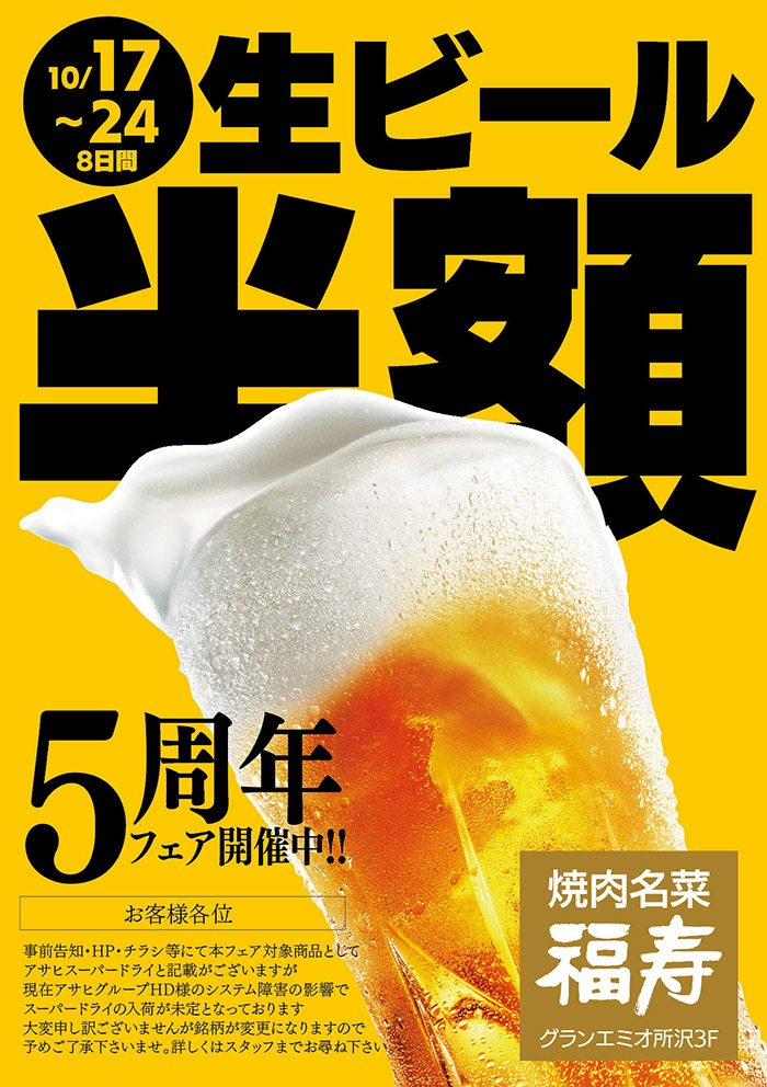 ■ 生ビール半額